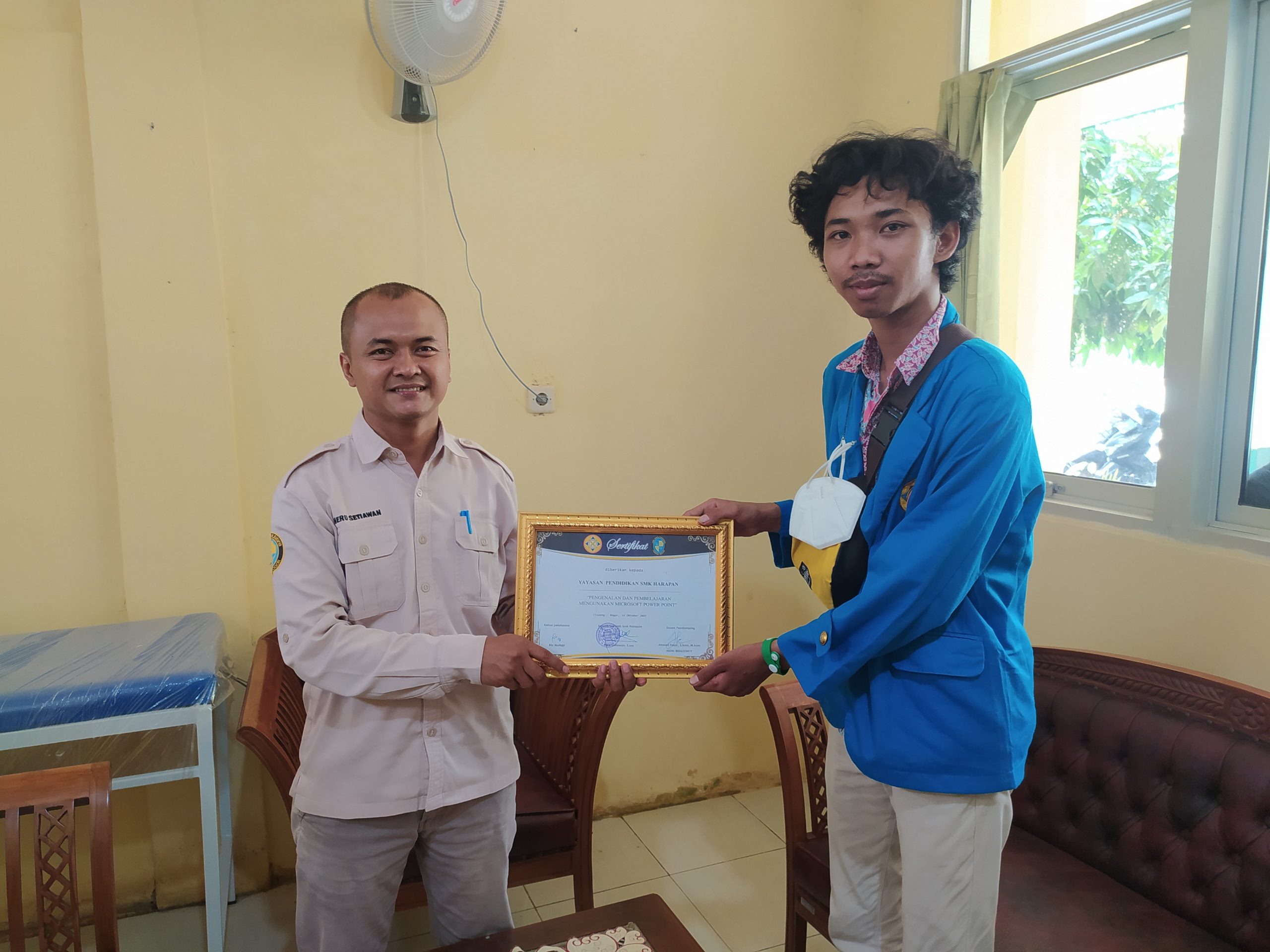 Untuk pelatihan sendiri kita mengambil 1 hari, pada hari sabtu, 16 Oktober 2021 .kami fokus dalam pemaparan materi dan praktek, Dan kami ucapkan terimakasih kepada Bapak Heru Setiawan selaku kepala Sekolah yang sudah mengizinkan kami untuk melakukan kegiatan Pengabdian Kepada Masyarakan (PKM) Di sekolah SMK Harapan Ciseeng, Memberikan cinderamata dan sedikit rewards kepada beberapa adik-adik yang telah mengerjakan tugas dan kenang kenangan berupa sertifikat untuk adik-adik yang telah mengikuti kegiatan pelatihan.